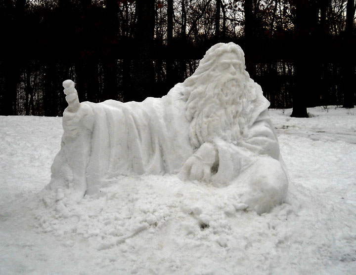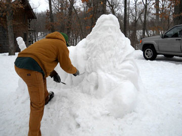 Also in the news this month, the recent blizzard across the Midwest left about 2 feet of snow on the ground that I felt I should do something with. So, I sculpted a snowman. The media picked it up and I appeared on television and in a
